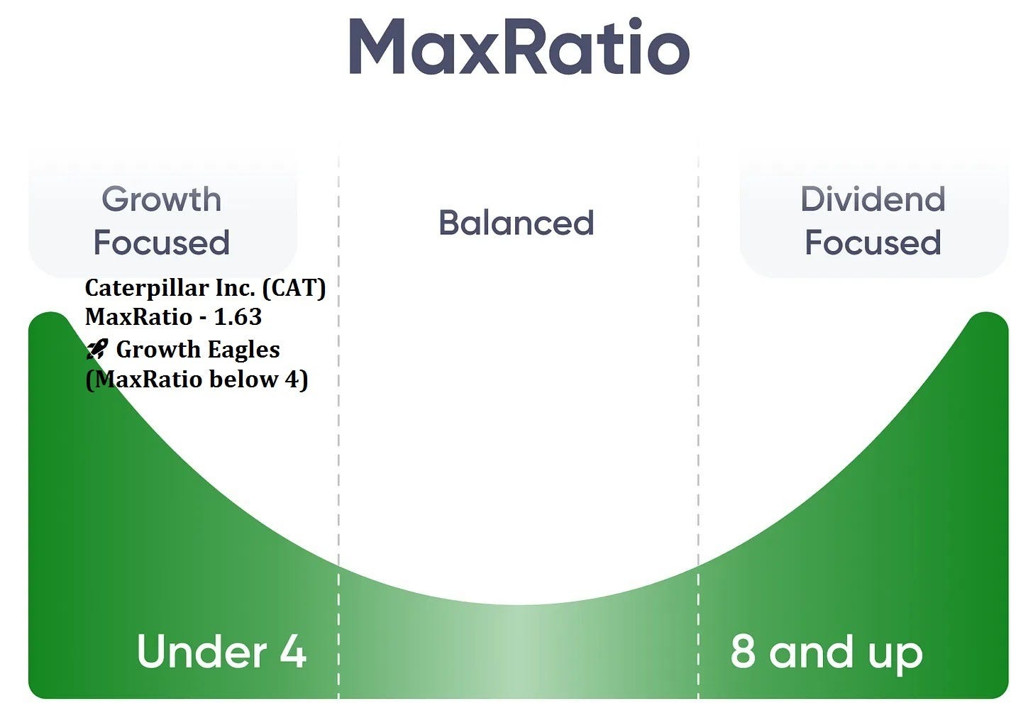 For Caterpillar (CAT), the MaxRatio snapshot lands decisively on the growth-leaning side of the framework. CAT shows a MaxRatio of 1.63, which places it in the Growth Eagles (MaxRatio below 4) category. In plain English, this is a dividend profile where the starting yield isn’t the headline feature, but the dividend growth engine has been powerful enough to drive long-run income compounding.