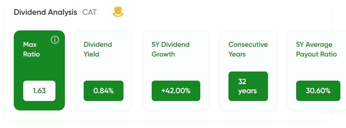 Here’s how Caterpillar stacks up under the MaxDividends lens: