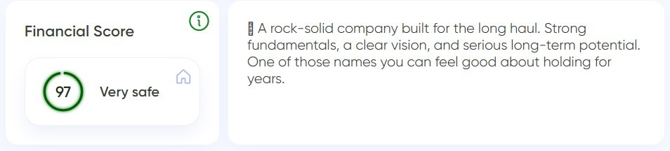 Inside the MaxDividends app, you can open Company Analytics and, in seconds, pull the two numbers that matter most for quick dividend positioning: the Financial Score and MaxRatio. No spreadsheets, no jumping between tabs — just a clean read on quality and portfolio role.