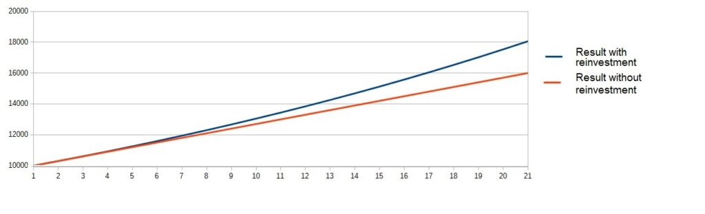 Regardless of its implementation method, the main goal of compound investing is to achieve exponential capital growth. However, this requires a timeframe of several decades.