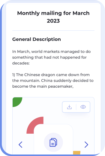 Select and range most profitable assets. Receive updates and recommendations on how to improve your portfolios.